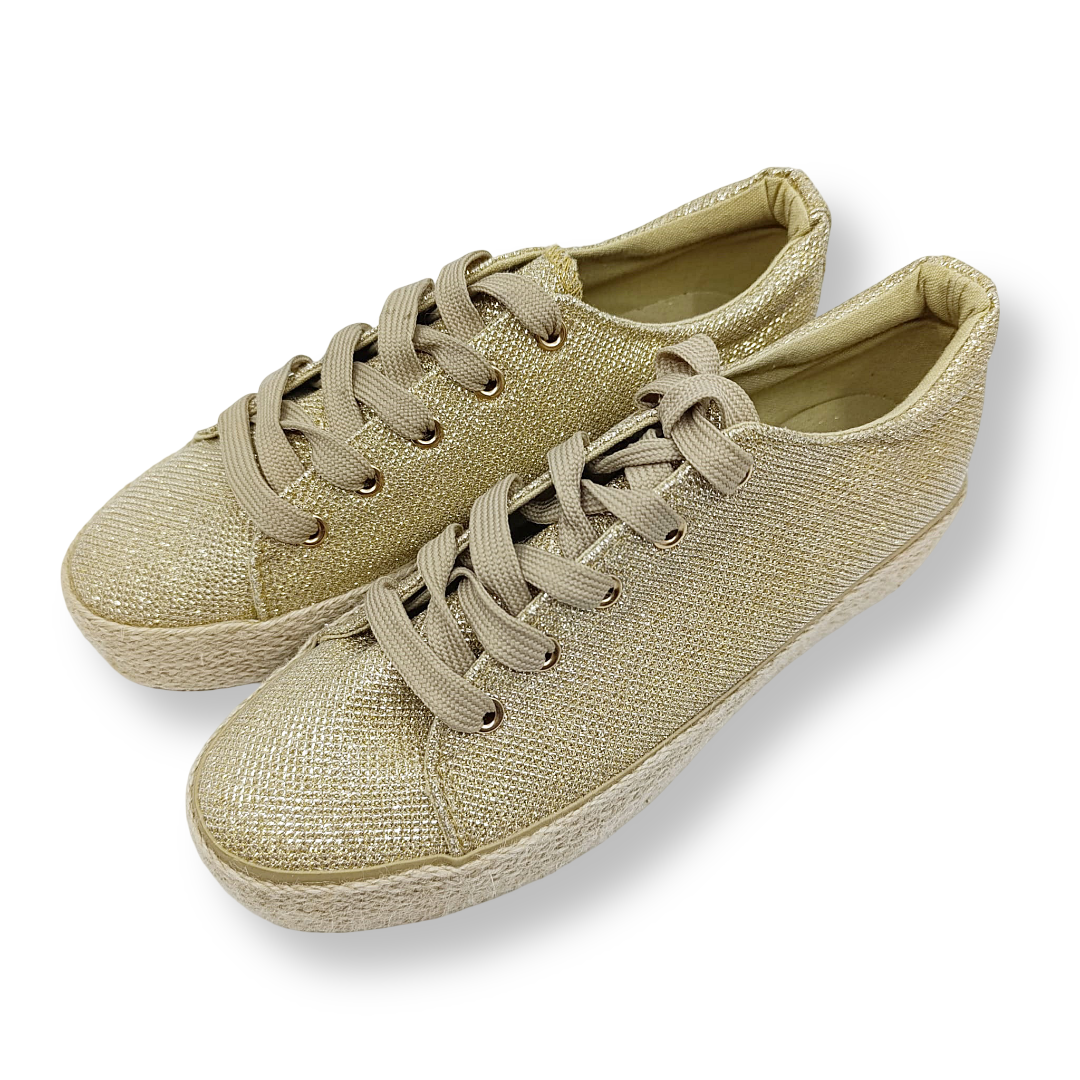 Otkrijte savršeni ljetni modni dodatak s našim elegantnim zlatnim špagericama za žene. Izrađene od visokokvalitetnog mekanog platna, ove cipele pružaju iznimnu udobnost tijekom cijelog dana. Prestižni zlatni ton dodaje dašak luksuza vašem ljetnom outfitu, istovremeno zadržavajući bezvremenski i svestran dizajn koji se lako kombinira s različitim odjevnim kombinacijama, od ležernih ljetnih haljinica do elegantnih hlača ili traperica.