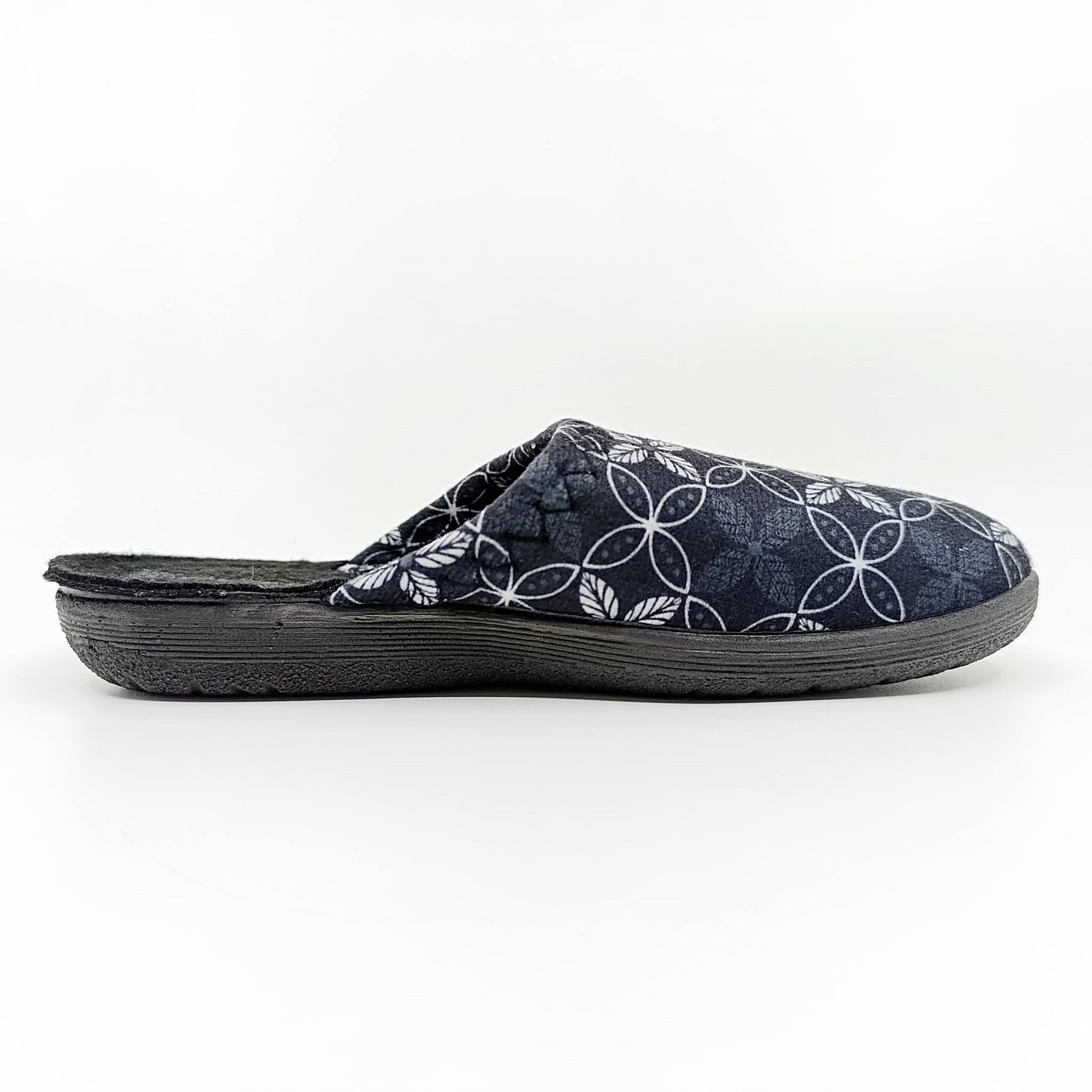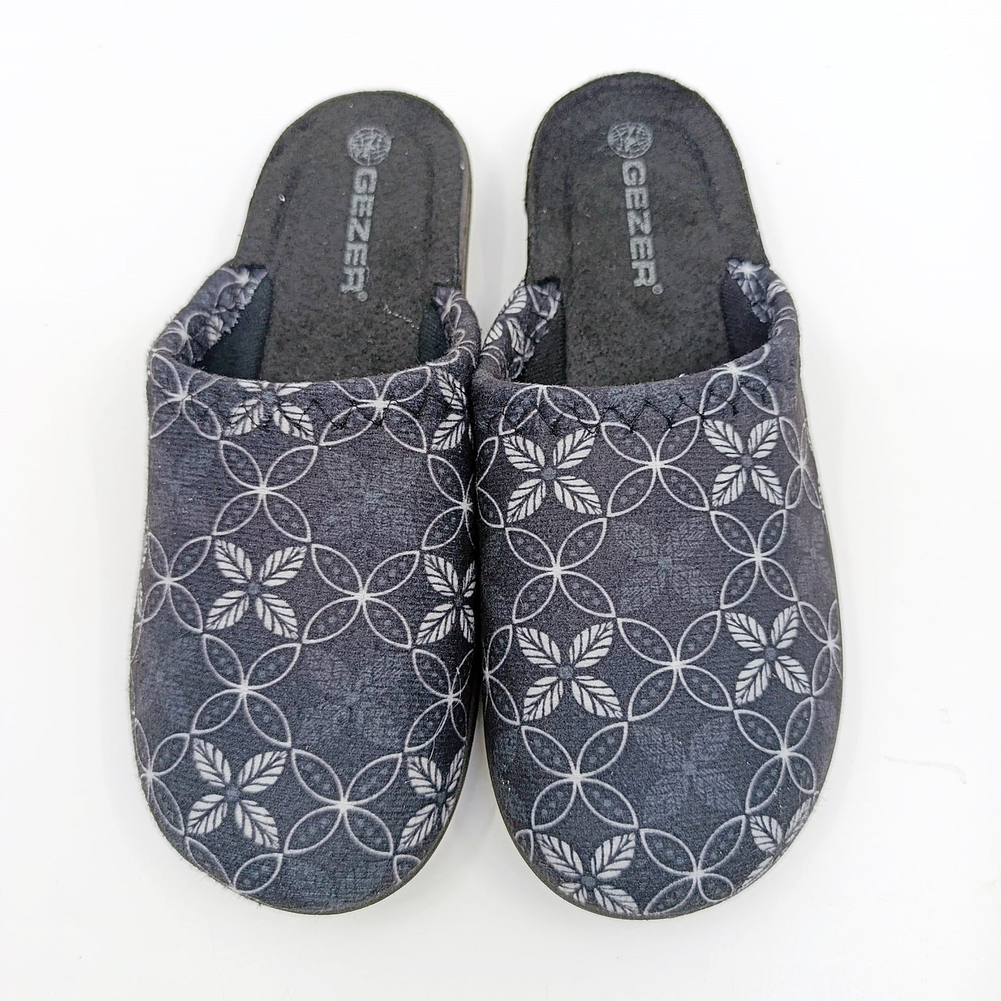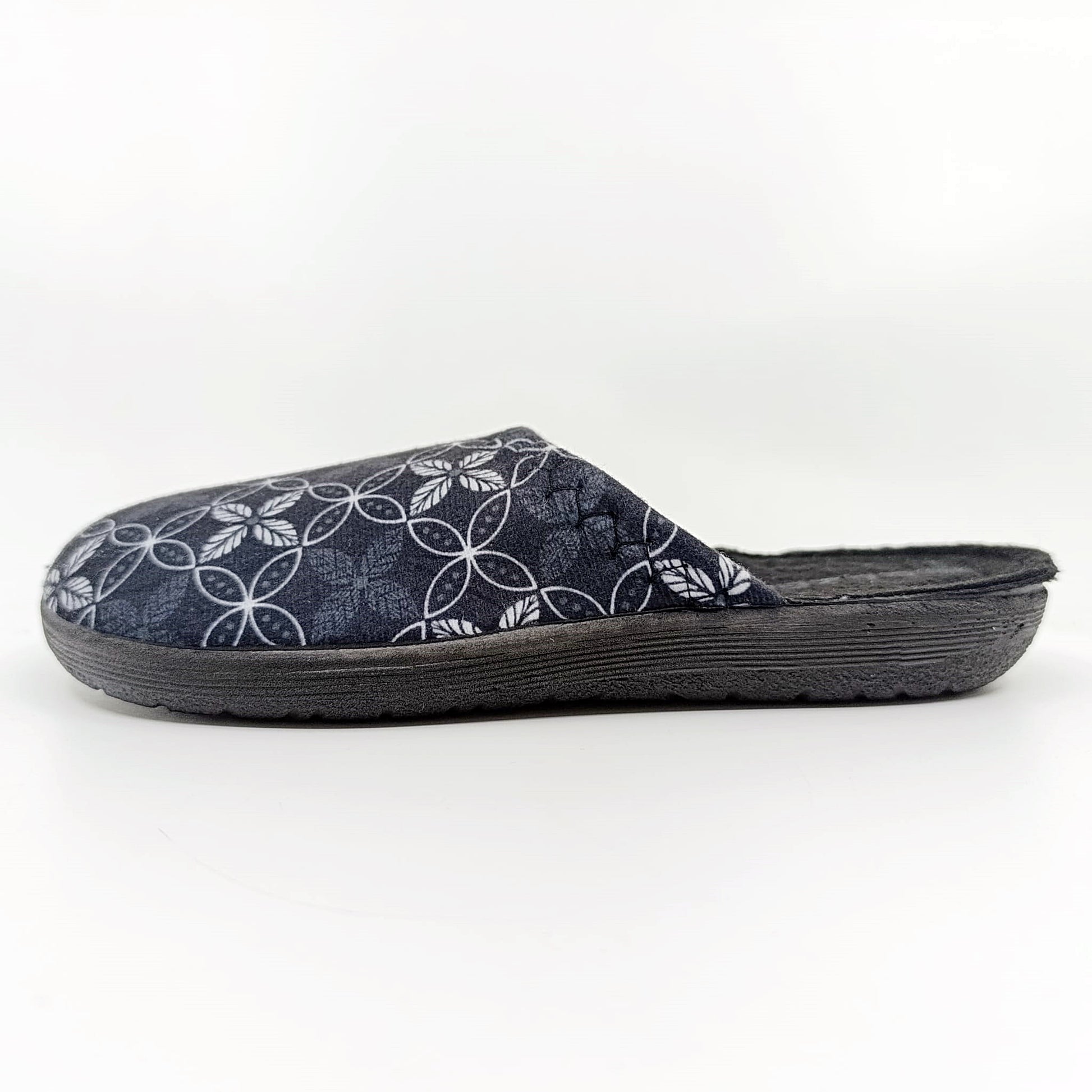 Ove elegantne ženske kućne papuče u sofisticiranoj tamno sivoj boji s dekorativnim srebrnim cvjetnim uzorkom predstavljaju savršen spoj elegancije i funkcionalnosti. Dezenirani list i prepleteni ornamenti stvaraju diskretno elegantan izgled koji odgovara svakom stilu uređenja doma. Izuzetno lagane konstrukcije, ove papuče omogućuju bezbrižno kretanje po kući bez osjećaja opterećenja, što ih čini idealnim za cjelodnevno nošenje. Dostupne u veličinama od 36 do 41, pružaju savršeno pristajanje za različite tipove stopala i zadovoljavaju potrebe svake žene koja traži kvalitetnu kućnu obuću.